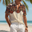 Voor heren Geometrisch patroon Etnisch Overhemd Overhemd met knopen Korte mouw Mode-casual Vakantie Feestdagen Strand Kleding Zomer Lente Strijkijzer shirts met kraag Khaki |