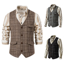 Voor heren Vest Alledaagse kleding Vakantie Uitgaan Vintage Brits Lente & Herfst nappi Polyester Comfortabel Ruitjes Enkele rij knopen Revers Normale pasvorm Grijs Zwart khaki Hesje |
