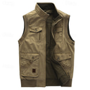 Voor heren Vest Alledaagse kleding Vakantie Uitgaan Modieus Casual Lente & Herfst Meerdere zakken 95% katoen Comfortabel Effen Rits Opstaand Normale pasvorm khaki Leger Groen Hesje |