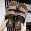 Bruine instapsandalen voor heren met uitsparing, zachte zomerslippers van imitatieleer voor comfort binnenshuis, weekenduitjes en casual gebruik buitenshuis |