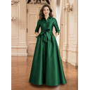 A-lijn Tot de grond Shirtjurk Bruiloft gast jurk Formele jurk Moeder van de bruid jurk Halve mouw Overhemdkraag minimalistische Formeel Bruiloft gast Herfst Satijn met Strik(ken) Plooien