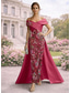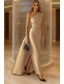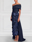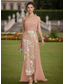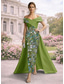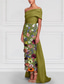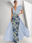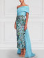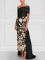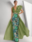Linjeform Gulvlengde Perlebrodert Formell kjole Kjole til brudens mor Kveldskjoler Ballkjole med overskjørt Formell kjole Elegant Fargeblokk Høy splittelse Kortermet Løse skuldre Bryllup Formell
