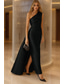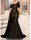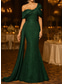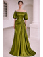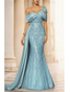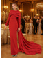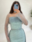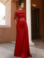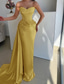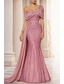 Havfrue Gulvlengde Kveldskjoler Elegant Glitrende Ballkjoler Ermeløs Enskuldret Hage fest Bryllup Sateng med Plissert Bølgemønster Overskjørt
