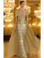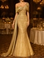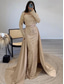 Havfrue Katedralen Train Kveldskjoler Ballkjole med overskjørt Formell kjole Elegant Glitrende Langermet Besmykket Formell Bryllupsgjest Charmeuse Paljetter med Bølgemønster Perledetaljer Paljett