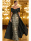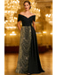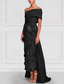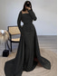 Havfrue Gulvlengde Kveldskjoler Ballkjole med overskjørt Formell kjole Elegant Fest Liten svart kjole Langermet Cowl-hals Formell Blonder med Paljett