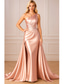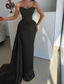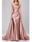 Havfrue Gulvlengde Kveldskjoler Ballkjole med overskjørt Formell kjole Elegant Liten svart kjole Ermeløs Enskuldret Bryllup Formell Rosa kjole Elastisk satin med Plissert