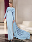 Havfrue Sweep Børste train Ballkjole med kappe Kveldskjoler Formell kjole Elegant Glitrende Langermet Crew-hals Bryllup Formell Stretch Crepe med Plissert Shouder blomst