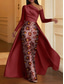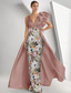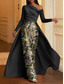 Havfrue Gulvlengde Kveldskjoler Ballkjole med overskjørt Formell kjole Elegant Langermet Illusjon Hals Karneval Formell Avtagbar Sateng Paljetter med Perledetaljer Overskjørt