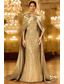 Linjeform Gulvlengde Ballkjole med kappe Kveldskjoler Formell kjole Elegant Glitrende Langermet Høyhalset Bryllup Formell Cape Paljetter med Glimmer