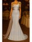 Havfrue Gulvlengde Kveldskjoler Ballkjole med overskjørt Formell kjole Elegant Silkete Ermeløs Stroppeløs Bryllup Formell Champagne Mother Of the Bride-kjole Sateng med Rhinsten Glimmer Bølgemønster