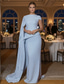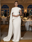 Havfrue Linjeform Gulvlengde Ballkjole med kappe Kveldskjoler Formell kjole Elegant Silkete Ermeløs Høyhalset Bryllup Formell Cape Stretch Crepe med Sjal