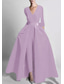 Linjeform Gulvlengde Ballkjole med kappe Kveldskjoler Formell kjole Elegant Silkete Langermet Enskuldret Bryllup Formell Stretch Crepe med Plissert