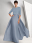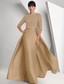 Linjeform Gulvlengde Perlebrodert Formell kjole Kjole til brudens mor Kveldskjoler Ballkjole med overskjørt Formell kjole Elegant Glitrende Silkete 3/4 ermer Knaphul Bryllup Formell Cape Sateng