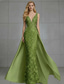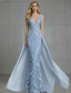 Havfrue Gulvlengde Kveldskjoler Ballkjole med overskjørt Formell kjole Elegant Ermeløs V-hals Bryllup Formell Sateng Blonder Ryggløs med Broderi Appliqué
