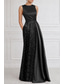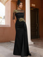 Linjeform Gulvlengde Kveldskjoler Ballkjole med overskjørt Formell kjole Elegant Liten svart kjole Ermeløs Besmykket Jul Formell Lomme Sateng med Broderi