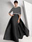 Linjeform Sweep Børste train Ballkjole med kappe Kveldskjoler Formell kjole Elegant Ballkjoler Kortermet Crew-hals Hage fest Bryllup Stretch Crepe med Bølgemønster Sjal