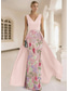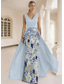 Ballkjole Gulvlengde Ballkjole med overskjørt Elegant Ermeløs V-hals Bryllup Formell Sateng Blonder med Brodert blomst 3D-blomster