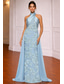 Linjeform Gulvlengde Perlebrodert Formell kjole Kjole til brudens mor Ballkjole med kappe Kveldskjoler Formell kjole Elegant Glitrende Ermeløs Høyhalset Aftenselskap Bryllup Tyll Paljetter med