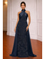 Linjeform Gulvlengde Perlebrodert Formell kjole Kjole til brudens mor Ballkjole med kappe Kveldskjoler Formell kjole Elegant Glitrende 3/4 ermer Høy krage Bryllup Formell Blonder Stretch Crepe med
