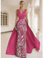 Todelt Jumpsuit / Pantsuit Gulvlengde Avtagbar Kveldskjoler Elegant Langermet V-hals Bryllup Bryllupsgjest Lomme Stretchstoff med Sommerfugl Splitt