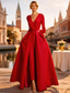 Jumpsuit / Pantsuit Gulvlengde Kveldskjoler Ballkjole med overskjørt Formell kjole Elegant Ballkjoler Langermet V-hals Bryllupsgjest Engasjement Høstens bryllupsgjest Sateng med Belte / bånd