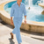 Herre T-skjorte drakter Skjorte- og buksesett 2 stk antrekk Langermet Høy krage Sommer Vår عادي Mote Fritid 2 deler Feriereise Dagligdagstøy Ut på byen Svart Hvit Blå Topp T-skjorte for menn