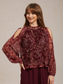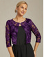 Dame Sequin Jakke Blazer Blonde Brodert Åpen Front Elegant Blomster Formell Jubiléumsfest Bryllupsgjest Åpen Front Kort Crewneck Regular Fit 3/4 Lengde Ermer Yttertøy Eggplant
