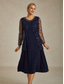 bryllup gjeste jumpsuit for kvinner elegant marineblå lang, gjennomsiktig ermet brede ben elegant kveldsfest slitasje rund hals vår sommer høst