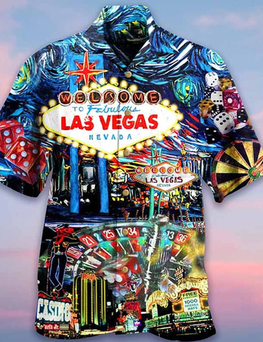 Herre Poker Dart Skjorte Hawaii skjorte Aloha skjorte Kortermet Skjorte cubansk krage Sport Mote Gatemote Avslappet utendørs Hawaiisk Blå S M L