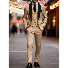 Herre Blazer + Vest + Kjolebukser Blazer Virksomhet Arbeid Bryllup Mote Gatemote Høst Vinter Terylene عادي 3 deler Enkeltkneppet Blazer Svart Champagne Rosa Kakifarget