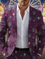 Herre Blazer Virksomhet Karneval Mardi gras Mote Gatemote Høst Vinter Terylene Grafisk Ballong 3D-utskrift Enkeltkneppet Blazer Mørk Lilla Lys Lilla Lilla