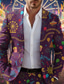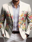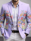 Herre Blomstermønster Blazer jakke Frakk Mote Bekvem Pustende Kunstnerisk Fritid Daglig Fest Formell 3D-utskrift Knapper Multi lomme Vår Høst vinter Med hakk Langermet Blå Lilla Brun