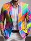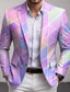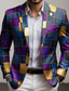 Herre Fargeblokk Geometrisk Blazer jakke Frakk Bekvem Pustende Kunstnerisk Fritid Avslappet Daglig Festkveldsklær 3D-utskrift Knapper Multi lomme Alle årstider Med hakk Langermet Rød Lilla Ametyst