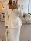 A-linje Te-lengde Hvit kjole Liten hvit kjole Elegant Åpen rygg Ermeløs Spagettistropper Bryllup Formell Stretchstoff Ryggløs med Plissert Ensfarget