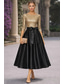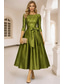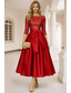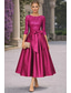 A-linje Te-lengde Cocktailkjoler Elegant 3/4 ermer Båthals Hage fest Bryllup Taft Paljetter med Sløyfe(r) Plissert