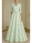 A-linje Gulvlengde Kveldskjoler Elegant Blomster Pastell 3/4 ermer Firkantet hals Bryllup Formell Jacquard med Sløyfe(r) Spalte