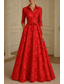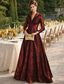 A-linje Gulvlengde Kveldskjoler Ballkjole Formell kjole Elegant Høy splittelse Silkete Langermet V-hals Bryllup Formell Lomme Sateng Jacquard med Lomme