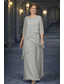 A-linje Kjoler Gulvlengde Gjestekjole til bryllup Formell kjole Aftenkjole Kjole til brudens mor 3/4 ermer Øsehals Elegant Enkel Minimalistisk Formell Chiffon Sjale med Bølgemønster Fallende drapering