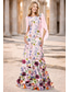 A-linje Gulvlengde Kveldskjoler Ballkjole Formell kjole Elegant Høy splittelse Langermet V-hals Bryllup Formell Lomme Nylon med Blomstertrykk Lomme