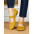 kvinners gule mary jane blokkhælpumper med rund tå og justerbar stropp for retrostil, kontorklær og formelle arrangementer