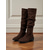 Damestøvletter i mokkabrun semsket skinn med knehøye hæler og unik form, minimalistisk urbant motefottøy