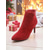 Røde damestøvletter i semsket skinn med stilettomotiv, glidelåsdetalj og spiss tå. Elegante og stilfulle, perfekte til jul, høytidsfester og formelle anledninger.