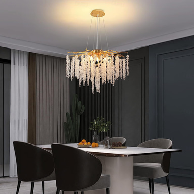 lysekronekrystall, tregren-lysekrone med frostet finish, hengende taklampe med regndråper, blomstrende lysekroner for spisestue, stue, soverom, entré (dia 31,2" rund)