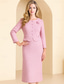 Linjeform Knelengde Festkjole Cocktail Kjole Gjestekjole til bryllup Kjole til brudens mor Langermet Besmykket Elegant Årgang Luksuriøs Bryllupsgjest Sateng Blonder med Appliqué