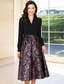 A-linje Ankellengde Festkjole Cocktail Kjole Gjestekjole til bryllup Kjole til brudens mor 3/4 ermer V-hals Elegant Årgang Formell Jacquard med Belte / bånd Sløyfe(r) Blomst