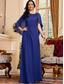 Linjeform Gulvlengde Festkjole Cocktail Kjole Gjestekjole til bryllup Kjole til brudens mor Kortermet Halvlange ermer Crew-hals Øsehals Elegant Formell Bryllupsgjest Familiefest Chiffon Stretchstoff