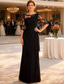 Havfrue Gulvlengde Gjestekjole til bryllup Formell kjole Aftenkjole Kjole til brudens mor Langermet Løse skuldre Elegant Formell Bryllupsgjest Blonder Elastisk chiffon med Blonder Ruchiing