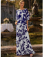 A-Linje Te-lengde Festkjole Cocktailkjole Bryllupsgjestkjole Mor til bruden kjole Langt erme V-hals Elegant Vintage Fest med blomst