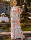 A-linje Kjoler Gulvlengde Gjestekjole til bryllup Aftenkjole Kjole til brudens mor Kortermet Båthals Elegant Enkel Fritid Formell Bryllupsgjest Forlovelsesfest Chiffon med Blomstertrykk Fallende