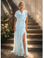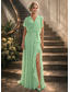 A-linje Gulvlengde Gjestekjole til bryllup Formell kjole Kjole med vidt skjørt Kjole til brudens mor Kortermet V-hals Høy splittelse Brudens mor Formell Bryllupsgjest Sateng med Blomstertrykk Spalte